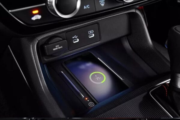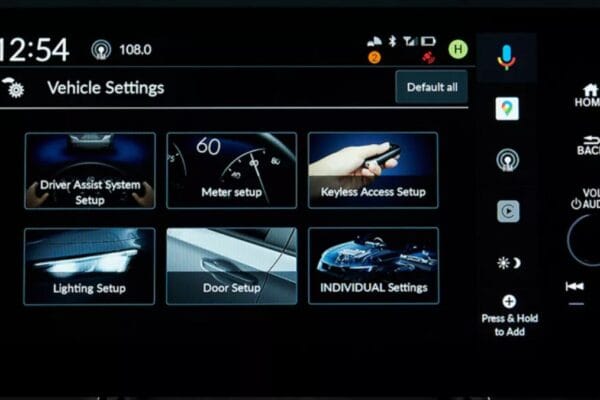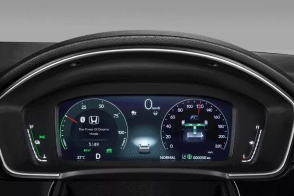 Pada bagian depan kabin, aksen honeycomb berbahan logam yang membentang pada dashboard meningkatkan kesan mewah yang berfungsi sebagai garis pemisah visual antara 9” Advanced Capacitive Touchscreen Display Audio dan panel kontrol A/C yang berubah menjadi Dual Zone Auto A/C yang berfungsi sebagai pengaturan suhu antara pengendara dan penumpang depan secara terpisah.